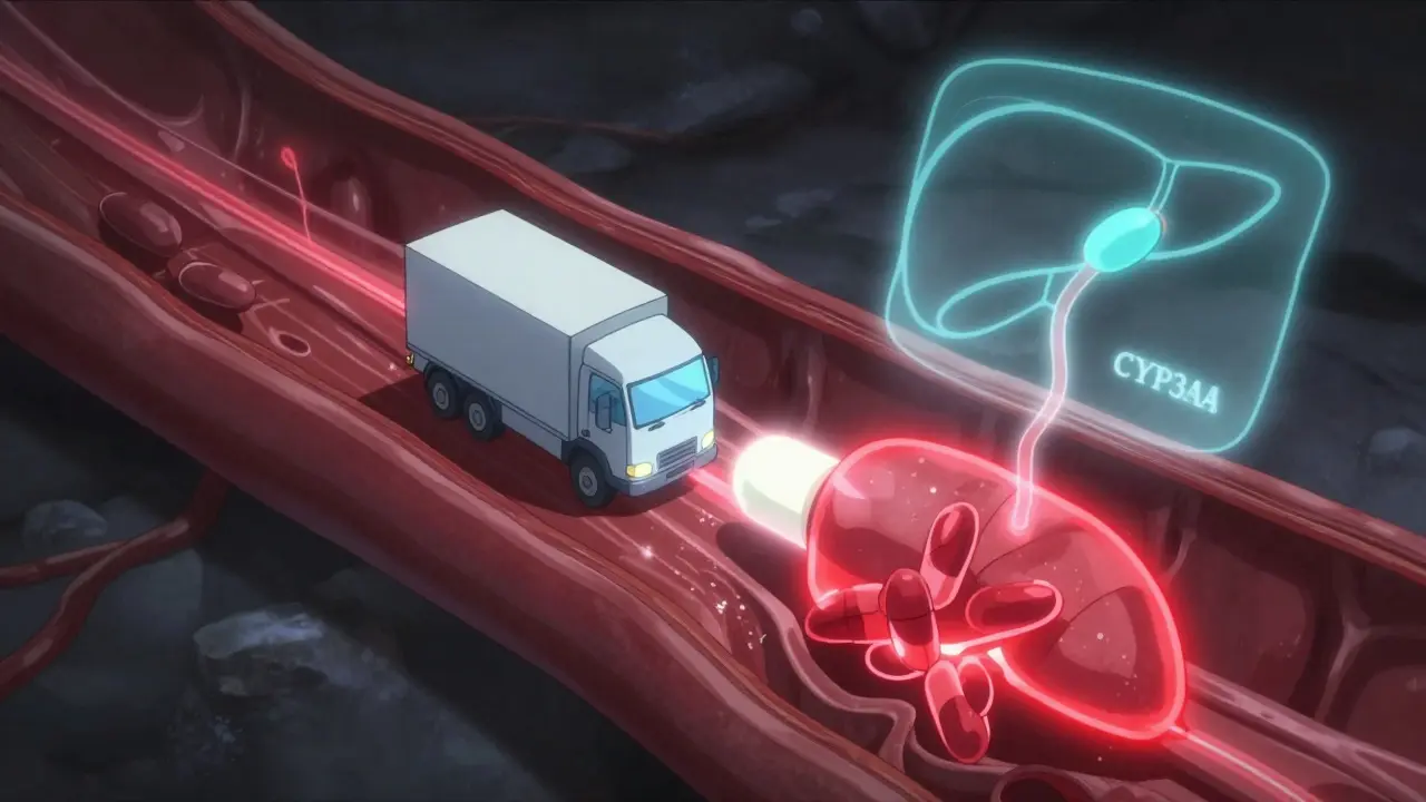 - Excretion: Your kidneys and liver remove drugs from your body. If a drug blocks the transporters that move others out (like P-glycoprotein), levels can climb. Digoxin, used for heart rhythm, can double in concentration when taken with verapamil, raising the risk of fatal heart rhythms.